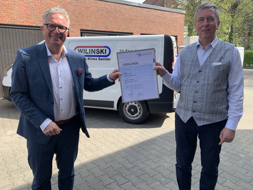 Andreas Wilinski, Vorstandsmitglied der Kreishandwerkerschaft Steinfurt-Warendorf und Obermeister der Fachinnung Sanitär-Heizung-Klima, feiert mit seinem SHK-Betrieb 50. Jubiläum. Frank Tischner, Hauptgeschäftsführer der Kreishandwerkerschaft…